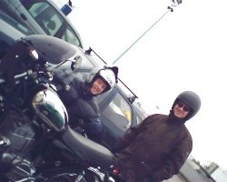 Kävimme koko poppoo sunnuntaiostoksilla Belle Epine -ostoskeskuksessa ; Kevin, pojat ja minä Twingolla ja Jean Davidin kanssa sivuvaunulla. Alla kuva Wallace & Gromit -kohtauksesta sivuvaunuineen !