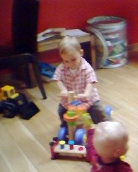 Open Piiperokaverit vanhempineen kävivät lounaalla ja leikkimässä ; Päivi toi iiiiiiihanaa meloonikeittoa johon dipattiin parmankinkkuun käärittyjä gressiinejä, pestoperunasalaattia ja vielä ananaskakunkin ! Grillasin lammasvartaat ja grillikyljet vaihteeksi uunissa, koska ulkona satoi lohduttomasti.Sadepäivästä huolimatta ipanoilla oli fiilingit katossa : kaksoset harjoittelivat portaissa ja fiikuksessa kiipeilyä, Tom leikki rodeota SEISOEN keinuhepan selässä pitämättä kiinni, kummipoika irrotteli soittamalla kävelylelua hampaillaan (uusi Jimi Hendrix ?!) ja isommat huristivat kuka milloinkin milläkin menopelillä…