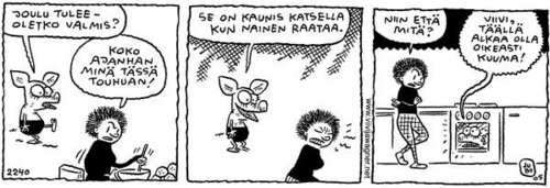 La célèbre BD finlandaise Viivi et Wagner retrace les rapports tumultueuses d’un couple (peu) ordinaire. Traduction des bulles :
