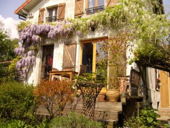 Malgré les prévisions météo catastrophiques, nous avons encore profité du jardin avec les garçons, et même des invités à dîner. Ci-dessous les pligaa avec le voisin en action dans l’impasse, ainsi que nos deux glycines, bleue et blanche, en cascade de fleurs.