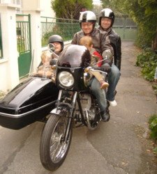 Nous avons surpris les hommes en flagrant délit de reconstitution de la fameuse pyramide inversée de Wallace et Gromit (Rasé de près) sur le sidecar Jawa, à la plus grande joie de tous.