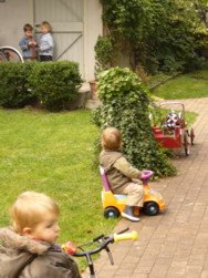 Hyvin iloista miesporukkaa. Autot ja pyörät on tietysti miesten mieleen.