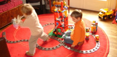 Lohtuna deko-juttu lastenhuoneista, ja kuvituksena ylla pligaa-poikien junarata ja paloasema.