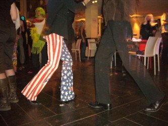 Mutta duunipippaloissa oli kerrankin julmetun hauskaa ; hutero olo oli täysin ansaittua. Apollo-ravintolan puolesta meille oli peruukit ja irtoripset ja muu rekvisiitta, aitoa Austin Powers -tunnelmaa pönkittämään.