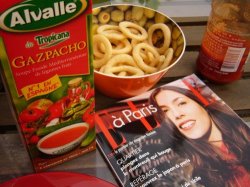Koluttuamme koko viikon illat terasseja, eilinen pyhitettiin omalle terassillemme. Suosikkimme gaspacho maistui ihanalta, selailin samalla Elle à Paris -liitettä jonka ilmestyminen harvenee päivä päivältä ; uusin veto oli liittää se Elle-viikkolehteen ja seuraava Elle à Paris tulee kioskeihin vasta syyskuussa ! Tässä numerossa Olivia Ruiz kertoo Abbesses-korttelinsa osoitteista jotka jemmaan tulevaa löytöretkeä varten.
