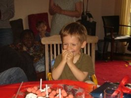 La fête officielle des trois ans de Tom fut toute aussi pluvieuse que la première : malgré le temps la bonne humeur de petits invités était irrésistible et le déluge de cadeaux dépassa largement celui qui s’abattait sur le jardin…