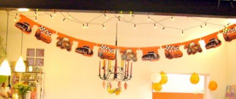 Tom juhli "virallisesti" 3v-päiviään aivan yhtä kamalassa kaatosateessa kuin viime sunnuntainakin. Vettä tuli kuin aisaa ja lahjoja sitäkin enemmän. Pienten bilettäjien hyväntuulisuus ei ollut kelistä moksiskaan ja tunnelma hipoi kattoon ripustettua rekvisiittaa.