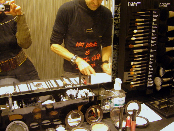 Le cours d'une heure et demie rue des Francs Bourgeois débuta par un état des lieux de mes habitudes et mes choix de produits. Ensuite, le maquilleur s'enquit du résultat souhaité et proposa un schéma de maquillage avec produits et teints adaptés à ma carnation, mes yeux – et surtout mes goûts.