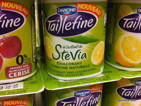 Quelle bonne surprise donc de découvrir aujourd'hui dans la gamme Taillefine de Danone des yaourts au citron, à la fraise ou à la cerise avec de la stévia. Je m'empressai de tester ceux à la fraise et ne fus pas déçue : les vrais morceaux donnent une sensation authentique, et la texture onctueuse est (presque) sans l'arrière-goût désagréable de l'aspartame… pour une fois je me délecte d'un produit light sans mauvaise conscience. Adieu les édulcorants artificiels douteux et bienvenue à la stévia !
