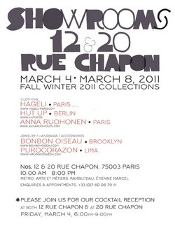 Alors ce vendredi, rendez-vous au Showroom, 12 et 20 rue Chapon, Paris 3e dès 18h ! Pour plus d'infos, voir la page Facebook ANNA RUOHONEN Paris.
