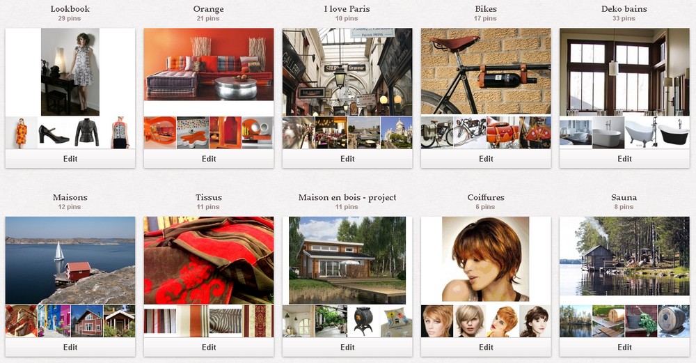 Adieu les feuilles volantes et articles découpés : le dernier cri en matière de sites web Pinterest est le lieu idéal pour compiler toutes ses idées déco, les recettes et astuces pour une belle table, les coiffures délurées, le shopping le jour où on gagne le gros lot, les destinations de rêve, les accessoires de vélo convoités, les échantillons de tissus… tout ce qu'on peut imaginer découper dans un magazine.