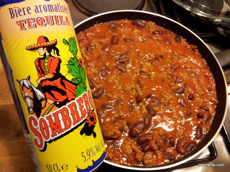 Pour accompagner le fameux chili con carne à la Maurelita hier soir, option Sombrero soit une bière aromatisée à la téquila avec une fière monture sur la canette :