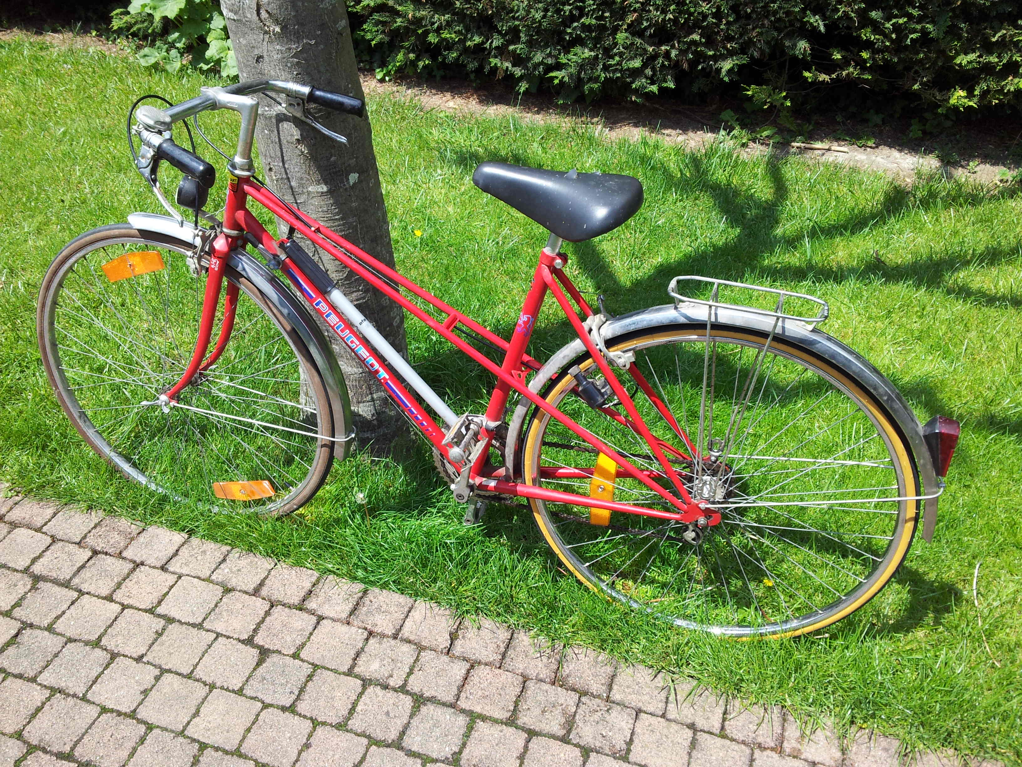 Entretemps, j'étais déjà sur un autre vélo… un Peugeot demi-course femme vintage, sur le même site, à saisir dans un quartier voisin. Le rouge m'a fait craquer, je suis rentrée avec et voici donc ma nouvelle écurie.