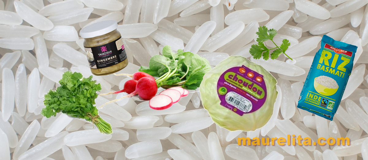 En plus du riz, j'aime bien y mélanger du Choudou, cette variété plate de de chou blanc, coupé fin il est savoureux et ultradigeste – mais aussi riche en anti-oxydants et en vitamines. Pour la couleur, ajouter des rondelles de radis et un bouquet de coriandre fraîche ciselée et le tour est joué.