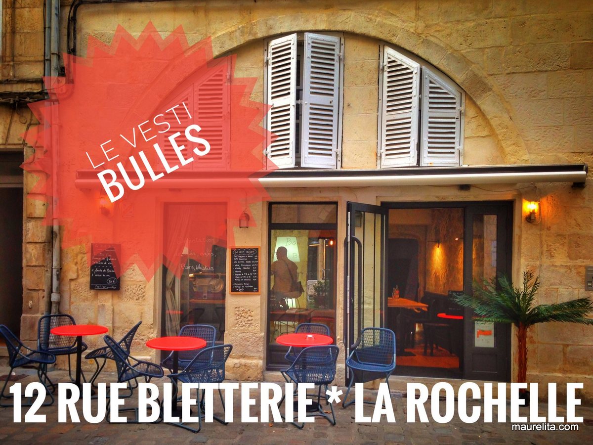 Tänä kesänä avannut upposen uusi viinibaari Le Vesti Bulles La Rochellen ydinkeskustassa tarjoaa tunnelmallisen sisäpihansa siimeksessä mm paikallisia luomuviinejä, leikkele- ja juustotarjottimien kera.